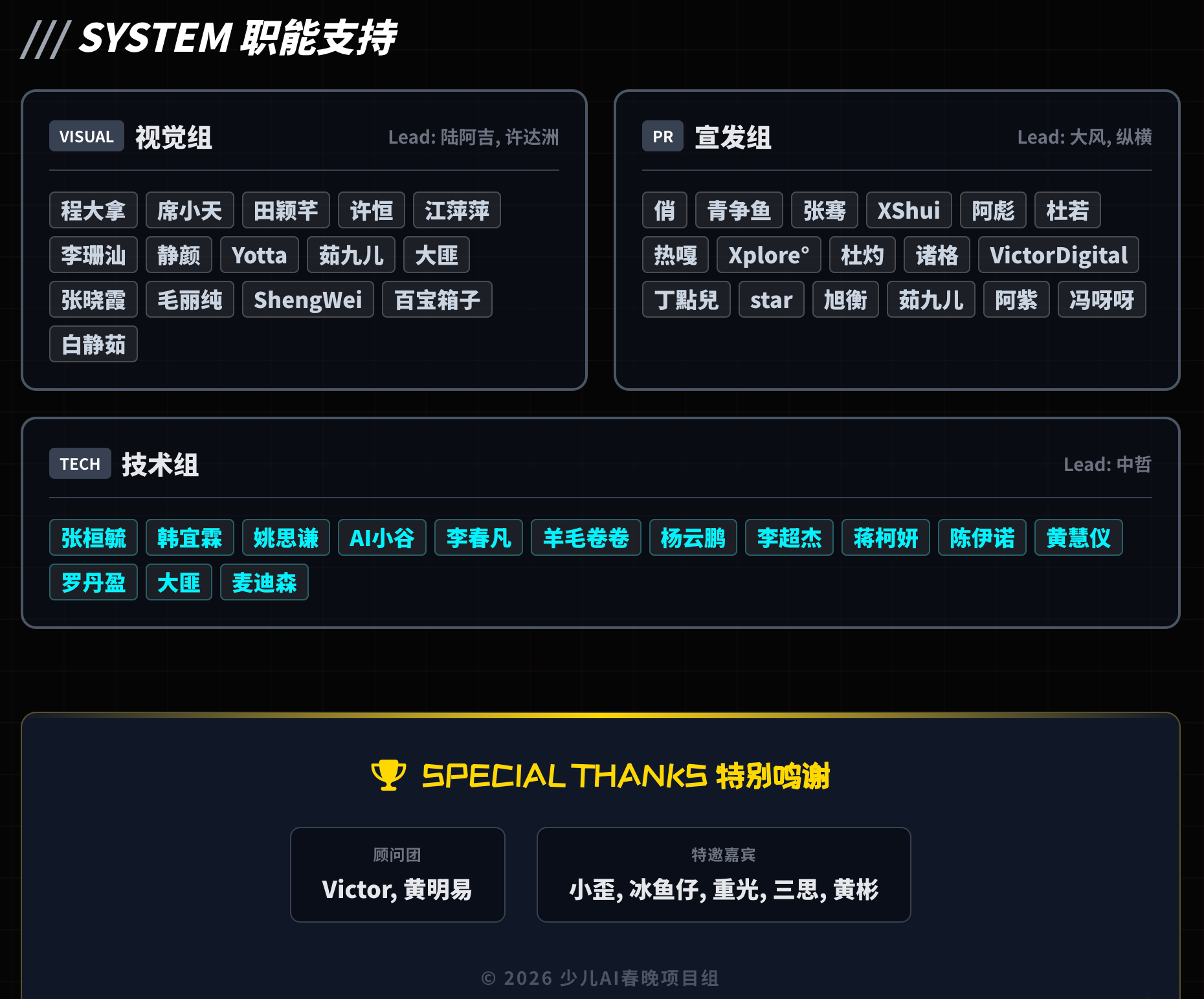 这场横跨40城的晚会背后,是一场跨越代际的深度连接。当这150多名6岁到16岁的AI小创作者们带着被好奇心点燃的想法,遇上由家长与200多名志愿者组成的特殊“护航团”时,奇妙的化学反应发生了。特别值得一提的是,志愿者队伍中活跃着大量高校大学生的身影。这些充满活力的“青年力量”以“大哥哥大姐姐”的身份反哺少年,将课堂所学转化为实践,在不同的项目组中发挥着自己的能力。而家长们也一改往日的单向督促,变成了与孩子并肩作战的“共创者”。青年的专业指导、家长的温情陪伴与孩子们的纯真创意,在这里碰撞出了绚丽的共创火花,成就了一段协同育人的佳话。