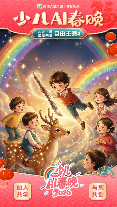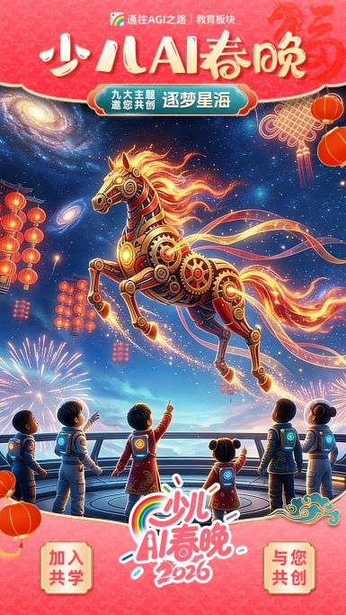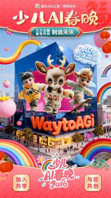 2026年2月15日(农历腊月二十八)20点,一场以激发好奇心为内核、跨越全球40城的“云端盛会”——WaytoAGI首届少儿AI春晚,将正式通过网络直播与观众见面。