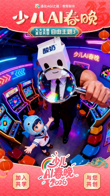 2月15日(农历腊月二十八)晚8:00,首届少儿AI春晚将在“WaytoAGI-EDU”微信视频号正式首播。 欢迎广大观众锁定直播间,当这150余份由好奇心驱动的共创作品点亮屏幕时,让我们共同见证这群“未来架构师”创造的数字奇迹!